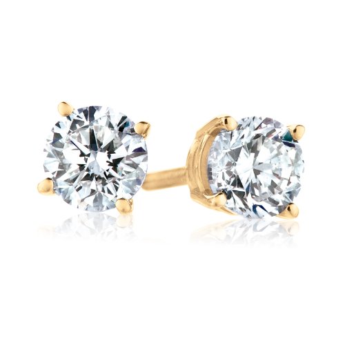 The best thing about these diamond earrings is that they can be worn every single day to show them off. Flirty and eye-catching, each round-cut stone rests in a four-prong setting made of 18 karat yellow gold. The diamonds have a total carat weight of 3/4 carat. The smooth finish of the metal and the light-reflecting cut of the gems make the pair immediately noticeable. Posts with friction backs